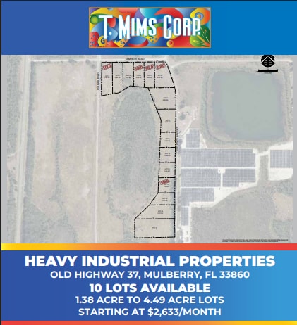 Old State 37 Hwy - Heavy Industrial - 10 Vacant Lots Lots • Terrain industriel • 1,38-4,49 Acre • 482 475 $-1 309 575 $ CAD par lot • Mulberry, FL 33860