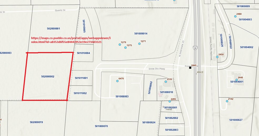 Cette parcelle de 10 acres est stratégiquement située à l'ouest de Love's Pueblo et est destinée à être aménagée dans une région en croissance rapide. La propriété bénéficie d'importantes améliorations récentes et continues à l'infrastructure, notamment : Excellente accessibilité : Un nouveau rond-point sur la promenade Drew Dix, la route de la façade ouest et l'intersection de la bretelle I-25 en direction sud offrent un accès facile à la propriété. Visibilité accrue et fluidité de la circulation : La construction d'une route avant à l'est de l'I-25 entre la promenade Dillon et la promenade Drew Dix, y compris un nouveau pont, améliorera la visibilité et la fluidité de la circulation dans le secteur. Infrastructure améliorée : Des améliorations au drainage, un nouveau ponceau à caissons en béton, de nouveaux raccordements aux trottoirs, des améliorations à l'éclairage, des panneaux et des bandes et l'installation d'un garde-corps contribuent à rendre le site de développement plus sécuritaire et plus attrayant. De plus, la présence de nouvelles constructions, y compris un Travel America et des points de vente au détail, indique un fort intérêt commercial pour la région. Ce terrain de 10 acres offre aux investisseurs et aux promoteurs une occasion exceptionnelle de tirer parti du marché en expansion et de l'emplacement pratique.