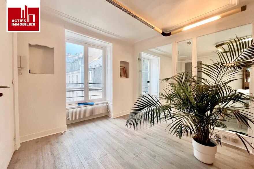 Quartier Madeleine/Opera/St Lazare, dans un immeuble de bon standing Actifs immobilier vous propose une surface de bureaux en étage élevé. Configuration : Accueil/bureaux, espace ouvert, 6 bureaux, cuisine et sanitaire. Ascenseur. Fibre optique. Loyer non soumis à TVA.