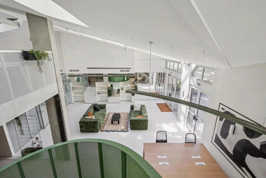 Situé dans une belle copropriété de la Rue de la Croix Nivert dans le 15ème arrondissement, à 300 m de la Porte de Versailles, dans un quartier mixte, dynamique et diversifié, mêlant bureaux, habitation et restaurants/commerces, cet ancien atelier a fait l'objet d'une transformation complète en immeuble aux derniers standards qui se développe sur environ 326 m² sur 3 niveaux (du sous- sol au R+1) accueillant jusqu'à 42 personnes. Cette restructuration ambitieuse est portée par l'agence Briand Bertheraud. Leur travail a permis de mettre en valeur l'actif et ses volumes avec une décoration contemporaine, en lien avec les besoins utilisateurs.