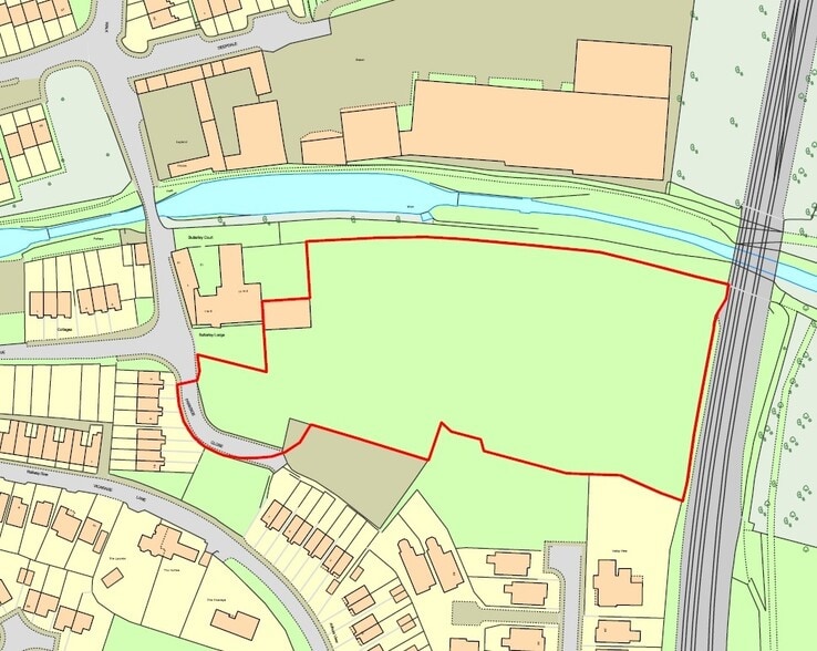 Possibilité d'aménagement sur le terrain adjacent à Parkside Close et le plan indicatif propose 54 maisons et 5 bungalows (terrains de bungalows vendus par la suite)