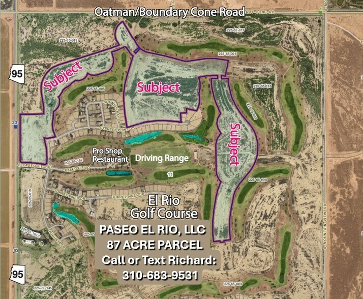 Le terrain vacant de 87,05 acres, actuellement zoné pour le développement résidentiel et l'usage récréatif, offre une façade exceptionnelle sur un parcours de golf ainsi que des perspectives uniques pour le développement résidentiel. Ce terrain se distingue particulièrement par son emplacement, entourant le célèbre parcours de golf de 18 trous conçu par Matt Dye. —FINANCEMENT PAR LE VENDEUR / CONDITIONS DE TRANSACTION AVEC LE PROPRIÉTAIRE DISPONIBLES— —COOPÉRATION AVEC COURTIERS : 6%— **Points forts de la propriété :** • **Emplacement :** Paseo El Rio – au sein du El Rio Country Club, Mohave Valley, AZ • **Superficie du terrain :** Environ 87,05 acres de terrain résidentiel de premier choix entourant un parcours de golf conçu par Matt Dye • **Zonage et usage :** Terrain résidentiel et récréatif • **Environnement alentour :** Paysages désertiques paisibles, proximité du fleuve Colorado et des attractions de Laughlin, NV, et Bullhead City, AZ • **Démographie :** - **Rayon de 1 mile :** 538 résidents, avec une croissance projetée de 11,9 % d'ici 2029 - **Rayon de 3 miles :** 10 542 ménages, avec une croissance projetée de 10,28 % **Pourquoi ce terrain est idéal pour un développement de maisons unifamiliales :** • **Échelle et exclusivité :** Opportunité rare d'acquérir une superficie contiguë suffisamment vaste pour concevoir une communauté privée, bien planifiée et riche en commodités. • **Dynamique du marché :** Une forte croissance de la population locale et des ménages indique une demande croissante en logements, offrant un contexte idéal pour la construction de nouvelles maisons. • **Attrait du mode de vie :** Situé dans un cadre enrichi par des activités récréatives (environnement de parcours de golf, vues panoramiques, etc.), ce terrain est prêt à séduire des acheteurs exigeants recherchant à la fois tranquillité et sophistication. • **Flexibilité du zonage :** Le zonage actuel permet une grande souplesse dans la conception et l’aménagement résidentiels, facilitant l’alignement avec votre vision architecturale et les normes des constructeurs.
