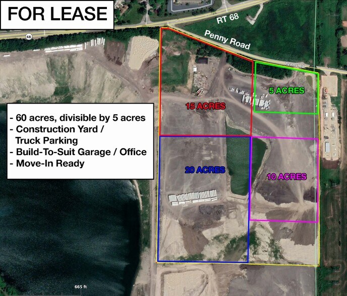 Now Leasing – 60+ Acres of Raw Land – Terra Business Park, East Dundee. Prime development opportunity in Terra Business Park, one of East Dundee’s most active commercial hubs. This 60+ acre parcel of raw land is now available for lease, offering truck parking, outdoor storage, and flexible build-to-suit opportunities for a variety of commercial uses. Access from Penny Road and just minutes from three I-90 interchanges. Terra Business Park is a thriving business environment, home to 20+ truck repair and maintenance shops, 2,000+ semi-truck parking spaces, and established tenants including Biggby Coffee and El Tio Ramos Mexican Cuisine, as well as a Speedway gas station. This land is ideal for: -Truck or vehicle-related uses -Other build-to-suit commercial projects Property Highlights: -60+ acres of raw, developable land -Build-to-suit opportunities -Minutes from three I-90 interchanges -Located in a thriving business park with strong daily traffic A rare leasing opportunity for businesses or investors seeking a highly visible, strategically located site in a growing East Dundee commercial corridor.