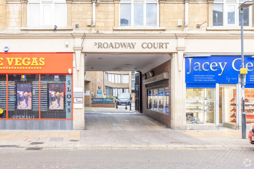 Broadway Court comprend un immeuble de bureaux de trois étages auquel on accède depuis Broadway par une arche menant à une cour. Les suites comprennent de la moquettes partout, un plafond suspendu, un éclairage fluorescent encastré et l'utilisation de WC communs pour hommes et femmes. La suite de l'aile sud comprend également un coin cuisine séparé.