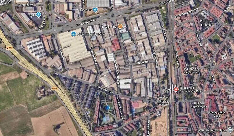 Nave industrial situada en Pinto, en la provincia de Madrid. El entorno inmediato corresponde a una zona industrial consolidada caracterizada por la concentración de empresas y actividades económicas. En las proximidades se encuentran distintos polígonos industriales del municipio, así como servicios de apoyo a la actividad empresarial. A nivel urbano, el núcleo de Pinto alberga equipamientos institucionales como el Ayuntamiento de Pinto y espacios culturales como la Casa de la Cadena, situados a varios minutos en vehículo. La nave cuenta con acceso mediante transporte privado a través de la autovía A-4 (Madrid–Andalucía), principal eje viario del municipio, así como de carreteras secundarias como la M-506, que conecta con otros municipios del sur de la Comunidad de Madrid. En transporte público, Pinto dispone de la estación de Cercanías Renfe Pinto, integrada en la línea C-3, que enlaza con Madrid y Aranjuez, además de líneas de autobuses interurbanos que comunican el municipio con localidades cercanas.