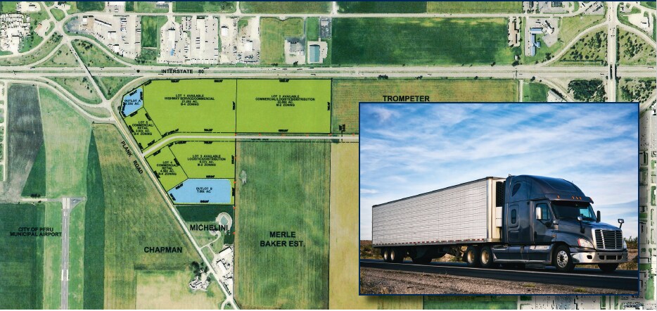- Ce terrain comprend 2 500 pieds de façade sur l'autoroute I-80 avec une grande visibilité.