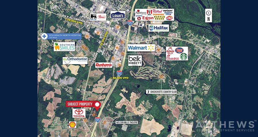 Les emplacements se trouvent directement de l'autre côté de l'I-95, en face du Weldon Mills Theatre, du Hilton Garden Inn et du futur amphithéâtre, ce qui en fait des endroits idéaux pour les entreprises recherchant une visibilité et une commodité maximales.