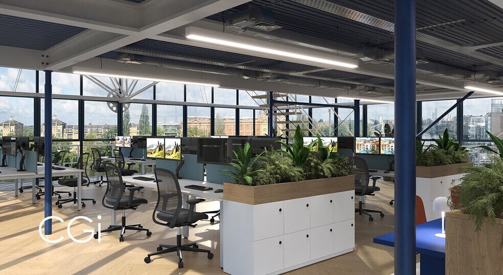 Office availability at Thames Wharf Studios is arranged in 4 separate buildings that surround the main courtyard. Converted in 1983 by Richard Rogers in their trademark bold industrial manner. Block 1 has been stylishly decorated to provide open plan office space with views of the river Thames.