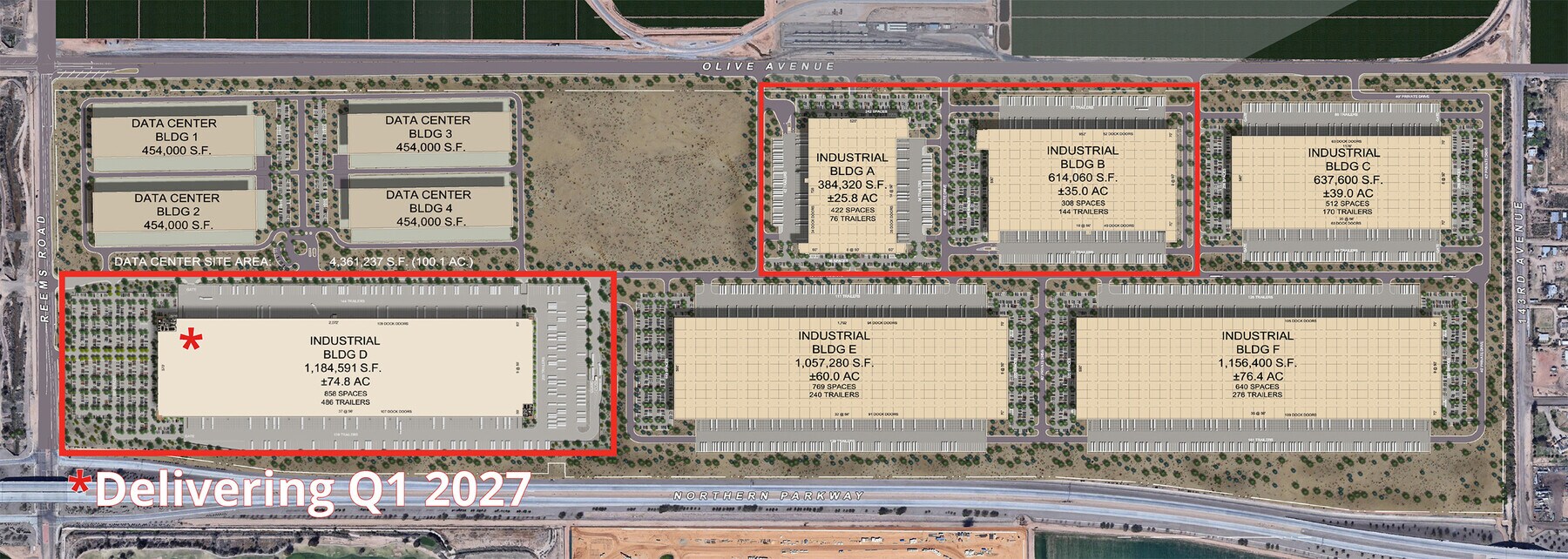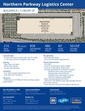 This 1,184,591 SF industrial building is part of the Northern Parkway Logistics Center and is currently under construction. It offers 210 dock doors, ample parking with 858 car parking spaces & 486 industrial trailer spaces, and more. Call for additional details.