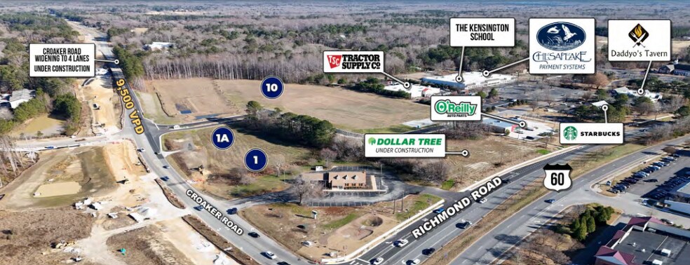 Lot 1A is located at the corner of the new Croaker Road entrance to Norge Crossing.