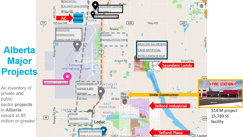 dans le « East Telford Lake Area Structure Plan » situé sur le chemin Future Spine et sur la route 623 du chemin Rollyview, à l'ombre de l'aéroport international d'Edmonton... L'aéroport international d'Edmonton (EIA) et le gouvernement fédéral sont en train de mettre en œuvre un important plan logistique de commerce électronique pour l'aéroport 100 millions de dollars ont été financés par le gouvernement de l'été 2022 pour élaborer ce plan. • Expédition de Shanghai 12 jours à Prince Rupert (coût est de 400$ à 500 $US moins cher qu'un port américain) (l'agrandissement du terminal de Prince Rupert de l'étape 1 est en voie d'être terminé en juillet. En 2024, la capacité du terminal sera prolongée à 1,8 EVP.) est la destination la plus rapide en Amérique du Nord, puis deux jours et demi de service ferroviaire jusqu'à l'EIA • L'EIA a reçu 100 millions de dollars du gouvernement fédéral pour élaborer le plan de création d'entrepôts de 60 millions de pieds carrés autour des plans d'EIA qui seront achevés en 2023 • Les marchandises seront envoyées aux centres de distribution en Amérique du Nord. • Pourquoi le Prince Rupert et l'EIA, parce qu'il s'agit des ports et des principaux aéroports les plus sous-utilisés en Amérique du Nord, devraient-ils être la voie de distribution la moins coûteuse et la plus rapide ! • S & D A +/-750 futurs terrains industriels et plus de 500 acres résidentiels futurs autour de l'EIA