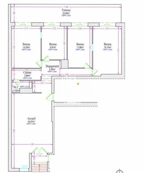 À vendre : Au RDC d'un immeuble, espace bureaux avec vitrine, terrasse et vue sur jardin, d'environ 121 m², idéalement situé rue Bertrand Geslin, à deux pas du centre-ville et à proximité du boulevard Guist'hau. Aménagements : 4 bureaux cloisonnés 1 open space lumineux Accueil chaleureux avec vitrine sur rue Coin kitchenette Sanitaires Terrasse privative avec vue agréable sur jardin 2 places de parking en sous-sol 1 cave Prix de vente : 550 000 € HT net vendeur Honoraires de commercialisation à la charge de l'acquéreur : 5 % HT (+ TVA 20 %) N'hésitez pas à nous contacter dès aujourd'hui au 02 55 07 86 35 pour obtenir plus de renseignements ou organiser une visite. Votre conseiller Locaux Bureaux Commerces : Sonia BERNOVILLE Agent commercial (Entreprise individuelle) RSAC ADC 4401 2025 000 000 874 RCP RCACO-24-028977 GALIAN SMA BTP. LOCAUX-BUREAUX-COMMERCES 02 55 07 86 35