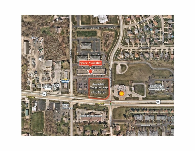 Prime 0.96-acre commercial lot with ±223' frontage on Route 30 (Lincoln Highway). Signalized corner at Route 30 & Frankfort Square Rd with excellent visibility and high traffic counts. B-2 zoning allows multiple uses; previously approved for fast-foo