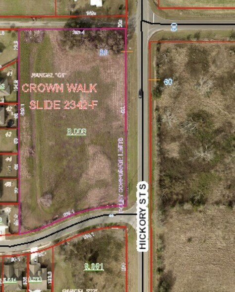 2,6 acres devant le lotissement Crown Walk. Zone B2 avec environ 422 pieds de façade sur la rue Hickory Les mesures du lot sont de 268,1' X 489,1 IRR.