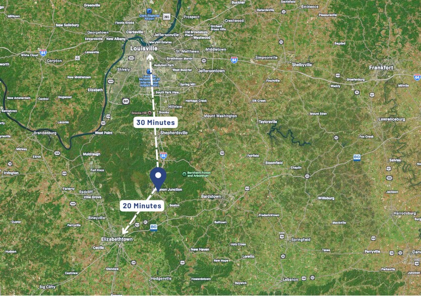 * Elizabethtown Boom: ~14 miles south on I-65 — BlueOval SK's $5.8B Ford EV battery plant (5,000 jobs), LOTTE Chemical's $238M facility, and Metalsa's 2,000-employee automotive manufacturing campus are reshaping Hardin County into one of Kentucky's fastest-growing industrial zones