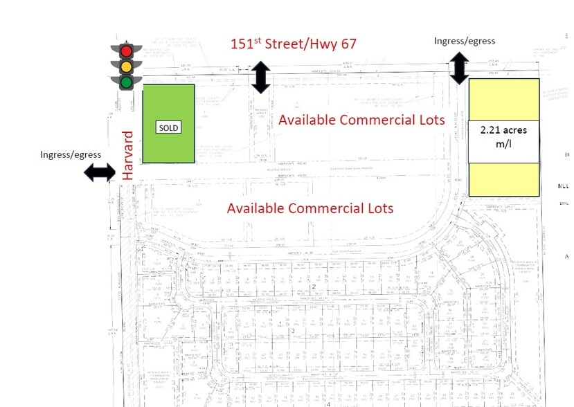 --Hard corner under contract to national user. --Multiple lots of varying sizes available. --SEC at only lighted intersection on 151st Str/Hwy 67 connecting Memorial (Bixby) and Hwy 75 (Glenpool). --Excellent visibility, high traffic counts, and frontage. --Utilities in place. --Curb cuts on both 151st & Harvard. --Call for pricing.