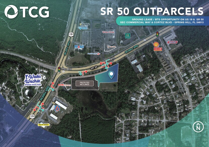 - Prime location at the SEC of US 19 (Commercial Way) & SR 50 (Cortez Blvd), Spring Hill, FL.