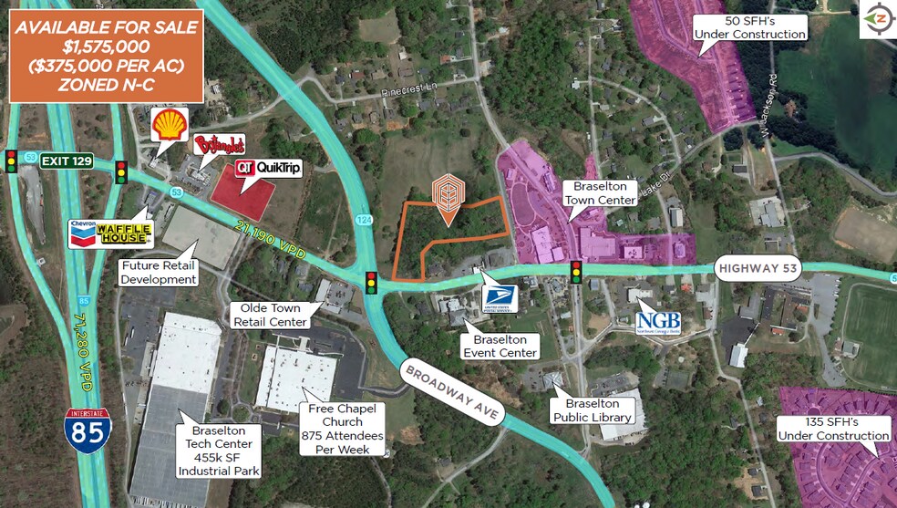 Less than 0.5 miles from I-85. Nearby to new commercial developments such as QuikTrip. Multiple new housing developments under construction nearby.