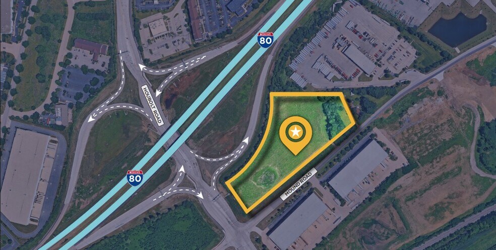 The parcel benefits from signalized access at Mound and Houbolt Roads, ensuring controlled traffic flow and ease of ingress/egress. Its location inside the overweight fee exemption zone and within a one-day delivery radius to 25% of the U.S. population further enhances its appeal for national distribution operations. The surrounding zoning of I-2 General Industrial supports a wide range of potential uses, and the site’s visibility along I-80 positions it for high-impact branding and signage.