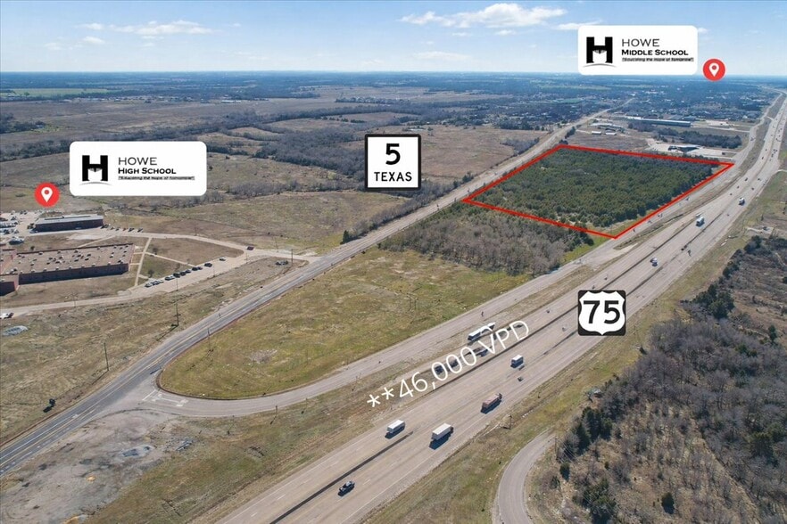Positioned as a key entry point into Sherman and the North Texas growth corridor along Highway 75, this 13.8+ acre tract at N Collins Freeway offers a prime opportunity in the direct path of expansion driving north from DFW. Located minutes from Texas Instruments’ multi-billion-dollar campus and surrounded by major industrial momentum including GlobalWafers and Coherent, the area is experiencing rapid growth fueled by job creation, infrastructure investment, and multiple single and multi-family developments breaking ground and in planning. Water and sewer are in place, and the City of Howe’s pro-growth approach supports a wide range of commercial, flex, or mixed-use opportunities. With strong frontage on both Highway 75 and Highway 5, this site offers excellent access, visibility, and long-term upside as Sherman, Howe, and Van Alstyne continue to expand—making it a strategic hold or development play in one of North Texas’ most active growth corridors.
