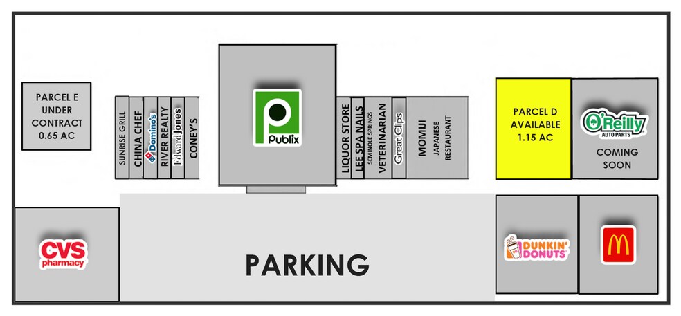 • Le centre commercial est loué à 100 % • La parcelle D 1.15 AC, la parcelle externe C 1.20 AC et la parcelle B 1.21 AC font l'objet d'un contrat. • Parcelles externes très visibles avec un accès facile disponible • Emplacement idéal pour la banque, la restauration rapide ou le commerce de détail spécialisé • À un demi-mile du prestigieux club de golf Eagle Dunes et de la communauté résidentielle, et à seulement trois milles du célèbre club de golf Red Tail et de la communauté résidentielle • Situé à l'angle privilégié de la SR 44 et du CR 437, dans une région en croissance rapide du comté de Lake • La région comprend un excellent hôpital, plusieurs parcs et aires de loisirs mis à jour, de nouveaux restaurants et de nombreuses autres améliorations intéressantes en cours à Eustis et dans les environs