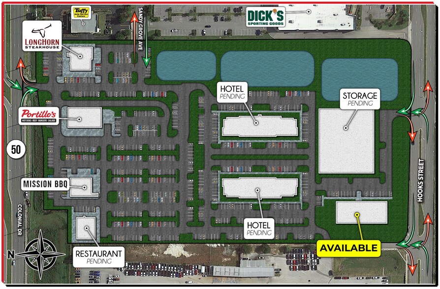 - Idéalement situé à moins de 0,5 milles de l'intersection de la SR 50 et de l'autoroute 27, qui voit environ 100 000 VPD combinées.
