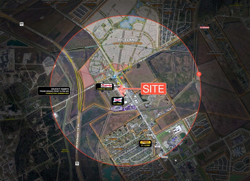 Espace commercial de construction neuve à louer. Près des QSR les plus performants. Adjacent à Riceland, une communauté planifiée de 4 107 maisons. Les rampes de sortie et de sortie de la Grand Parkway jusqu'au FM 565 sont maintenant terminées.