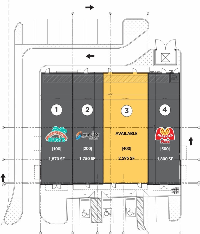 | Superficie totale disponible | 2 595 pi² | Propriétés du centre | 1 |