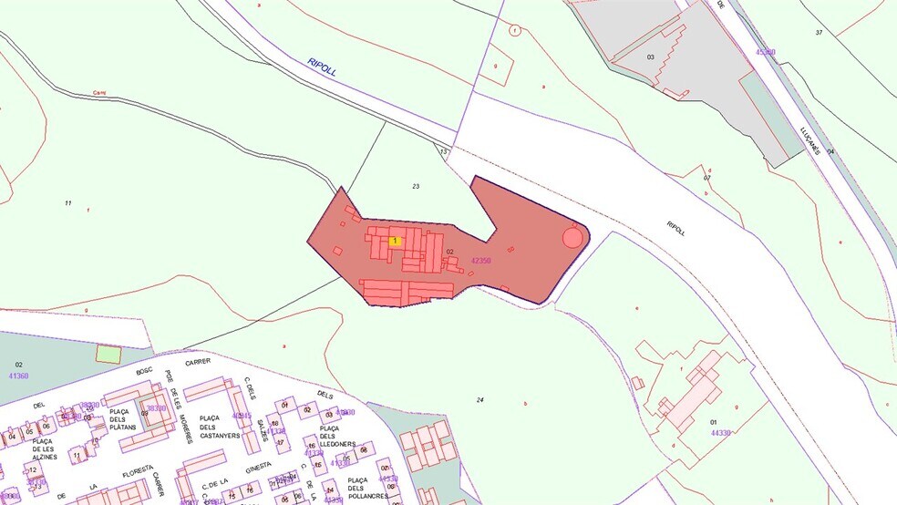 El solar cuenta con una superficie aproximada de 13.441,03 m2 y se sitúa en un entorno natural de carácter relativamente aislado, en el margen derecho del río Ripoll. La localización se caracteriza por un contexto paisajístico abierto, con predominio de espacios naturales y baja presencia de edificación inmediata.