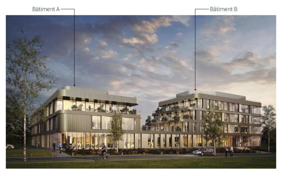 Saint-Herblain, à proximité du périphérique et des transports en commun, CBRE vous propose à la vente ou à la location un programme neuf composé de 2 bâtiments. Livrés en 2024, les immeubles bénéficieront de prestations haut de gamme et d'un excellent ratio parking. Sur la ZAC du Moulin Neuf, le Fresnel II proposera à ses utilisateurs des grands plateaux modulables, des espaces extérieurs privatifs et de nombreux stationnements. Immeuble neuf . Possibilité de réaliser un clé en mains . 1 hall d'entrée par bâtiment . Accès PMR . Contrôle d'accès . Eclairage leds avec détecteurs de présence . Ascenseurs . Souplesse d'aménagement . Plateaux rationnels . 60 places de stationnement en sous-sol + création de 46 places le long des bats A et B Démarrage des travaux prévus au 1T 2023 Durée travaux 15 à 18 mois Architecte TOPOS Surface RDC : 1704,58 m²