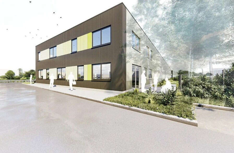 RUDIGOZ & Associés - KNIGHT FRANK vous présente un parc d'activité neuf d'environ 2800 m² divisé en 8 cellules avec portes sectionnelles, mezzanines et places de stationnement - Possibilité de quai de déchargement, HSP 6m, tarif jaune. Situé à proximité du centre de Bourg en Bresse.