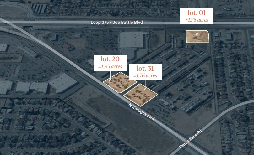 Les parcelles sont situées entre les principales voies de Boucle 375/Joe Battle et N Chemin Zaragoza