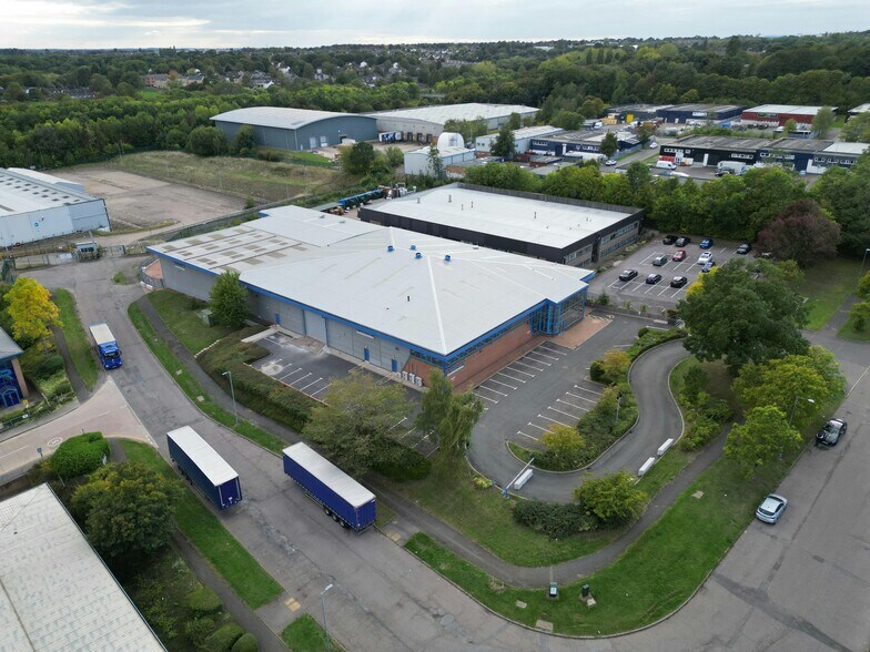 The property is a detached industrial/distribution unit with external elevations of brick and metal profiled cladding, situated within Round Spinney Industrial Estate, one of Northampton’s key employment hubs. The estate benefits from excellent connectivity, lying approximately 3 miles north-east of Northampton town centre, with dual carriageway access to Junction 15 of the M1 (6 miles) via the A43 and onward links to the A14 for national distribution routes. The site offers substantial car parking provision, refurbished office accommodation, and LED lighting throughout, making it ideal for modern logistics or production operations.