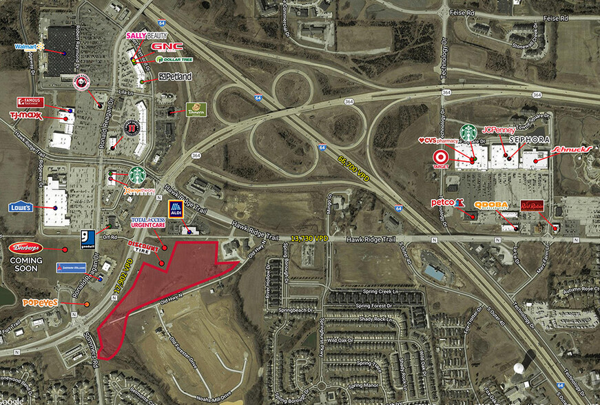 DÉTAILS DE LA PROPRIÉTÉ Accès facile de/vers l'Interstate 64 Emplacements sur mesure et coussinets de restaurant disponibles Fortes données démographiques Destination de vente au détail à croissance rapide LE NOMBRE DE TRAFIC Autoroute N : 17 902 VPD
