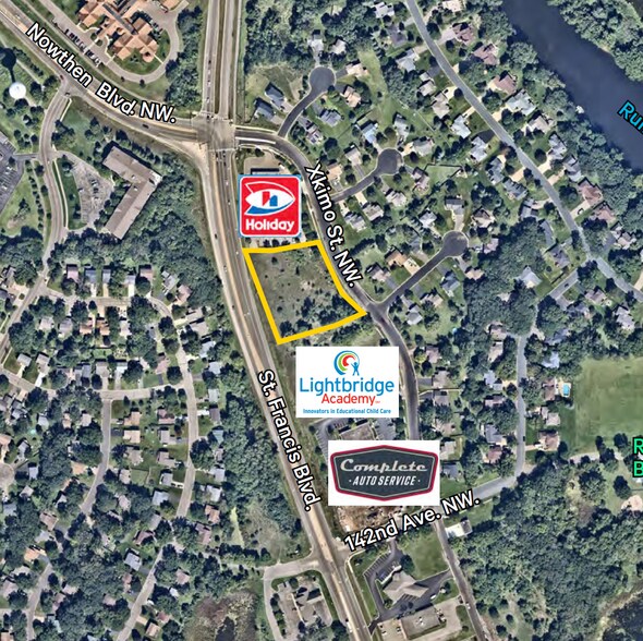 Vacant land for sale with frontage onto St. Francis Blvd in Ramsey, MN. This property is adjacent to a brand new Lightbridge Academy daycare, and a Holiday gas station, providing a prime development opportunity for a retail or office user. The Zoning and Future Land Use allow for a variety of commercial uses, allowing a new development to be well integrated into the surrounding neighborhoods and retail corridor.