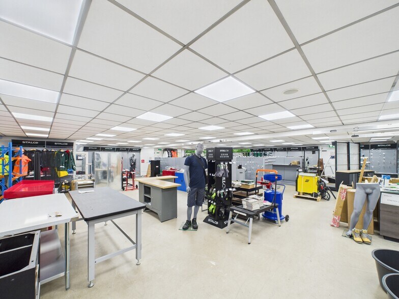 The showroom is of modular construction, with metal / PVC external cladding, under shallow-pitch / flat roofs. The internal layout extends to an open-plan sales area, offices, store, and staff welfare facilities. There are three large uPVC display windows and a customer entrance door, all under full-width fascia signage. The workshop is accessed via sliding timber doors and is of concrete block construction, surmounted by a timber-frame roof with corrugated metal cladding. A partial mezzanine store has been created, which is accessed via a fixed ladder.