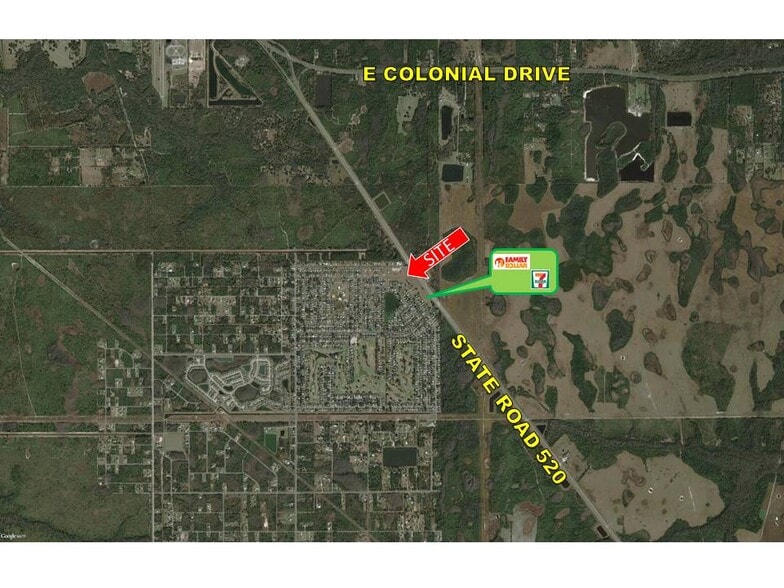PARCELS EXTERNE : Disponible — Prix à déterminer en fonction de la taille de la parcelle et de l'emplacement ZONAGE : C-1, par l'évaluateur immobilier du comté d'Orange UTILITÉS/RÉTENTION : Il y a une conduite d'eau principale de 10 pouces le long de la SR 520 (avant) et un égout par gravité à l'arrière. Le fournisseur de services publics est Pluris Utilities Wedgefield. NOMBRE DE TRAFIC 2022 : AADT par ingénierie de la circulation du comté d'Orange Route nationale 520 18 304 (1,5 milles au sud de Colonial Drive) Promenade Maxim 10 176 (350 pi O. de SR 520) 2023 (ESTIMATION) DÉMOGRAPHIE : 1 mille 3 milles 5 milles Population 3 405 7 670 22 162 Revenu médian HH 80 812 100 304$ 96 672$ Revenu moyen HH 102 494$ 103 759$ 106 751$