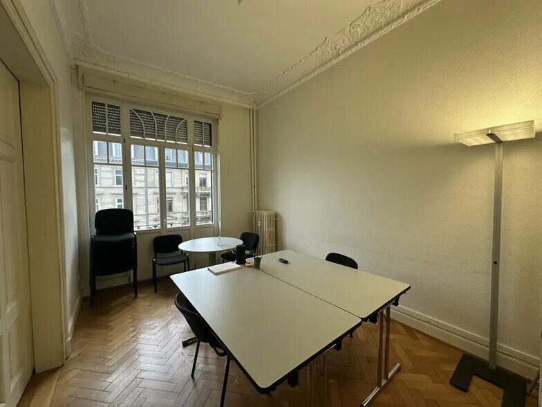 Bureaux à louer - Avenue des Vosges - Strasbourg centre À Strasbourg, Avenue des Vosges, à proximité immédiate du centre-ville et de l'arrêt de tram République, ces bureaux à louer bénéficient d'un emplacement recherché, idéal pour une activité tertiaire, libérale ou de services. Situés dans un immeuble en pierre de taille, les locaux offrent de beaux volumes et un cachet remarquable avec leurs plafonds hauts moulurés et leur belle cage d'escalier. D'une surface totale d'environ 170 m², les bureaux se composent de : Six bureaux Une salle de réunion Un espace cuisine Une salle de bain Un hall d'entrée accueillant Les locaux sont en bon état général, lumineux et fonctionnels. Leur configuration permet une installation rapide et une organisation optimale des espaces de travail. Bureaux bien situés à Strasbourg, à deux pas du centre-ville, des commerces et des transports en commun. Disponibilité : avril 2026 - Type de bail : Commercial - Durée : 3/6/9 ans - Préavis : 6 mois - Fiscalité : TVA - Indice : ILAT - Indexation : Annuelle, date prise effet - Dépôt de garantie : 3 mois - Loyers et charges : Trimestriels et d'avance - Immeuble ancien - Locaux lumineux - Bureaux cloisonnés - Parquet - Cuisine - Salle de réunion - Sanitaires privatif - Chauffage collectif