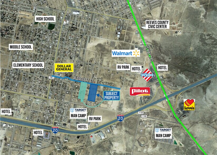 Cette propriété de 15.05 acres est divisée en deux parcelles ; la parcelle ouest est de 6,59 acres et la parcelle est de 8,46 acres. Les deux parcelles sont séparées par une propriété appartenant à d'autres. Ces secteurs sont zonés R-2 : Résidentiel à densité moyenne. Cela comprend les complexes d'appartements, les logements manufacturés, la vente de lots et les parcs de VR. L'utilisation proposée est le logement pour les travailleurs de Pecos. Un plan d'emplacement proposé comprend 55 unités, chacune comprenant une remorque double de largeur et deux places de stationnement dans les deux parcelles. Un deuxième plan du site montre des unités modulaires pouvant accueillir jusqu'à 120 unités, un stationnement partagé, un terrain de basket-ball et un club house sur le tracé Est. Terres brutes aux usages variés ! La propriété est située dans un excellent emplacement à proximité de tous les nouveaux développements au coin nord-ouest de la US autoroute 285 et I-20. Communiquez avec John McDaniel pour obtenir de plus amples renseignements.
