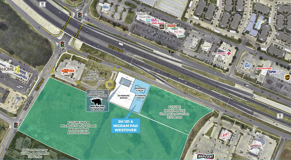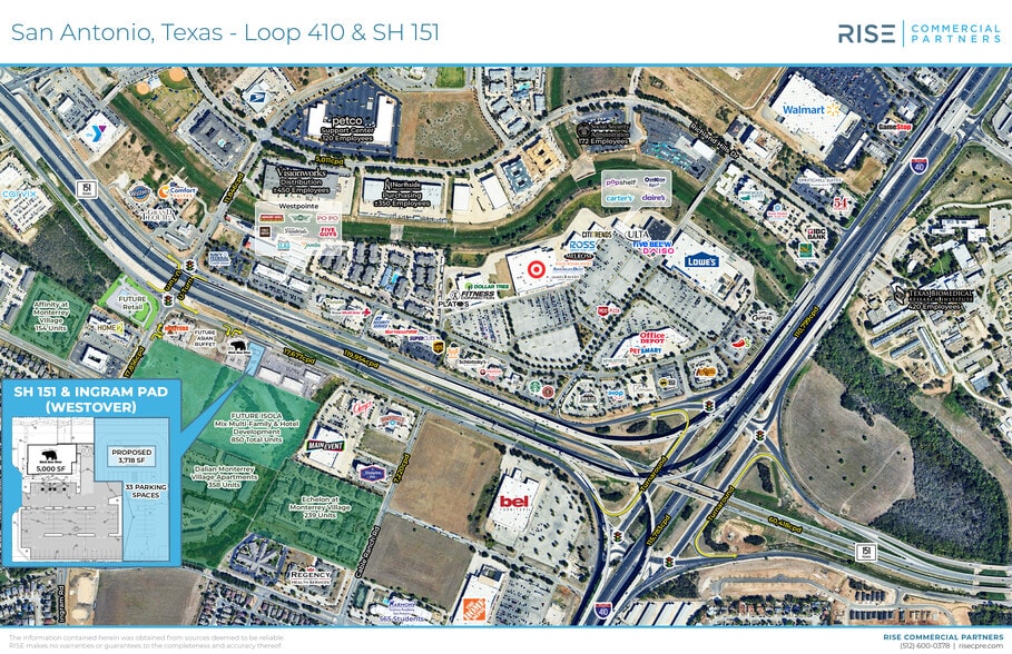 Up to 3,718 sf Building (0.711 acre pad) • Rare pad site in Westover Trade Area • Great visibility from SH 151 • Over 145,000 daytime population within 5 miles Sale Price: $725,000 Please contact broker for lease rate