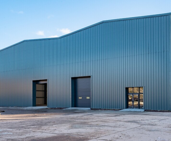 - Steel portal frame construction with electric roller shutter doors
