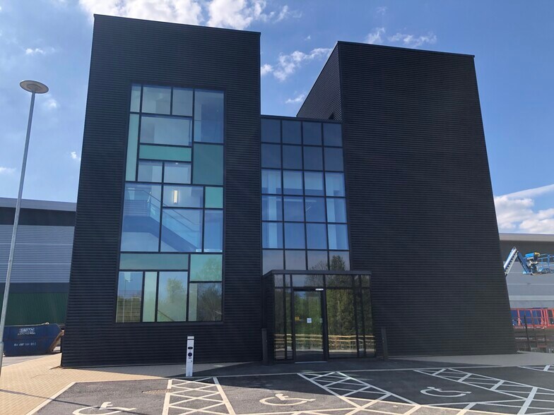 Le logement disponible comprend le bâtiment de liaison avec un entrepôt de 77 000 pieds carrés exploité par un détaillant en ligne de renom. La propriété est entièrement autonome, avec le principal espace de bureaux situé au premier étage, comprenant un hall d'entrée et des installations sanitaires. Le rez-de-chaussée offre une réception / salle d'attente exclusive ainsi que des toilettes supplémentaires et des espaces annexes. Au dernier étage, on trouve une terrasse commune sur le toit offrant une vue panoramique.