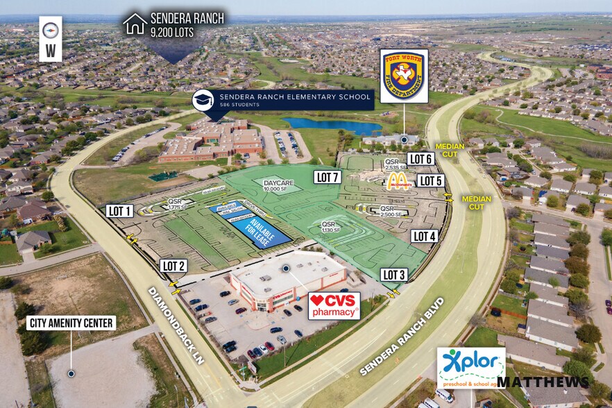 - Adjacent à l'école primaire Sendera Ranch et à la pharmacie CVS