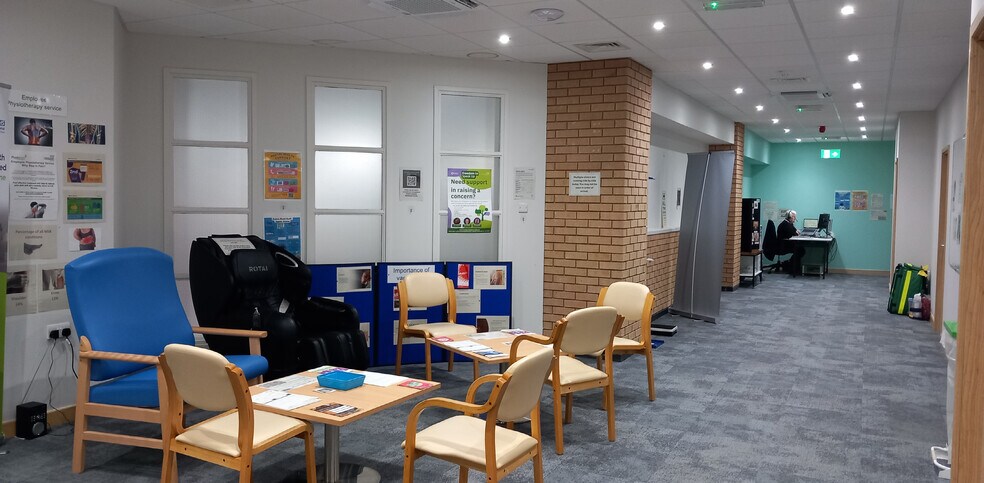 The available accommodation is a self-contained first-floor office suite accessed via the main reception of Kettering Leisure Village’s Balance Health Club. The space is configured for professional or medical use, offering five cellular offices, a reception, a manager’s office, a large meeting room, WC facilities, and a kitchenette. Interior finishes include suspended ceilings, carpeting and laminated flooring, and full air conditioning throughout. The suite benefits from direct access to extensive on-site parking and optional use of the adjoining leisure facilities at an additional cost. Services include mains electricity and water, with prospective occupiers advised to verify all utilities directly.