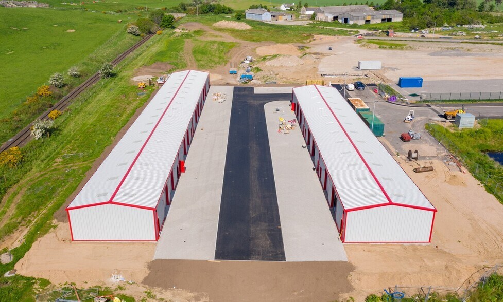 Trouvez 14 unités de démarrage industriel nouvellement achevées à une courte distance en voiture à l'est du centre-ville d'Elgin. Elgin est le principal centre administratif et commercial de la région de Moray, dans le nord-est de l'Écosse, située à 38 milles au nord-est d'Inverness et à 66 milles au nord-ouest d'Aberdeen. À la suite de l'achèvement de la première phase du parc d'affaires Elgin, le parc présente une gamme d'unités nouvellement construites disposées autour d'une aire de circulation commune à surface de tarmacadam centrale offrant un stationnement et un chargement. Chaque unité comprend un cadre de portail en acier en construction sous des toits en pente, construit selon une excellente spécification pour inclure des lucarnes pour augmenter la lumière naturelle, une porte à volet roulant et une entrée piétonne. À l'intérieur, l'espace ouvert est doté de planchers de béton et d'une hauteur d'avant-toits de quatre mètres sous la hanche, s'élevant à cinq mètres au sommet. Des places de stationnement revêtues de blocs seront attribuées à l'avant de chaque unité, et le périmètre de l'ensemble du site sera aménagé avec un mélange d'arbustes et d'arbres. Situé au principal centre administratif et commercial de la région de Moray, Elgin est une destination commerciale de premier plan avec d'excellentes liaisons de transport. Accédez facilement à un rond-point nouvellement construit sur l'A96, offrant une liaison directe importante pour le transport vers le parc.