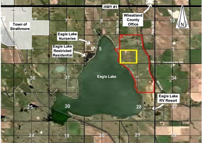 Voici votre opportunité : 157 acres situés dans le plan de structure de la zone Eagle Shores. Situé à l'est de Strathmore, sur l'autoroute 1, au sud sur le Range Road 442 jusqu'au bout de la route. Ces 160 acres font partie du plan de structure de la zone Eagle Shores, qui comprend un parcours de golf de 18 trous avec club-house, des commerces, un hôtel/salle de conférence avec 691 maisons potentielles en rangée et maisons unifamiliales. Propriété de conservation idéale avec opportunité de développement potentiel en étant associé au plan de structure de la zone Eagle Shores. Il y a actuellement un bail foncier en place qui génère environ 20 000,00 $ par an, revenu exact à confirmer.