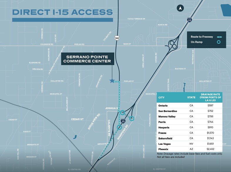 US Highway 395 & Poplar St Hesperia, CA 92344 43.26 Acres A fully entitled, shovel ready land site in Hesperia, CA, in the rapidly expanding Inland Empire North submarket. The Site features 43.26 acres of prime, developable land, which allows for a ±750,000 square foot building. Located along HWY-395, Serrano Pointe Commerce Center has immediate access to Interstate 15, offering superior connectivity throughout the region and into the greater Western United States.