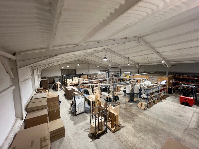 A steel framed storage unit with partial concrete walls under a pitched roof with timber and brick elevations. Externally, there is a good-sized open yard area providing parking and facilities for loading and unloading (shared). The outgoing tenant has installed a high-quality office pod within the unit, subject to terms offered, this is available for purchase.