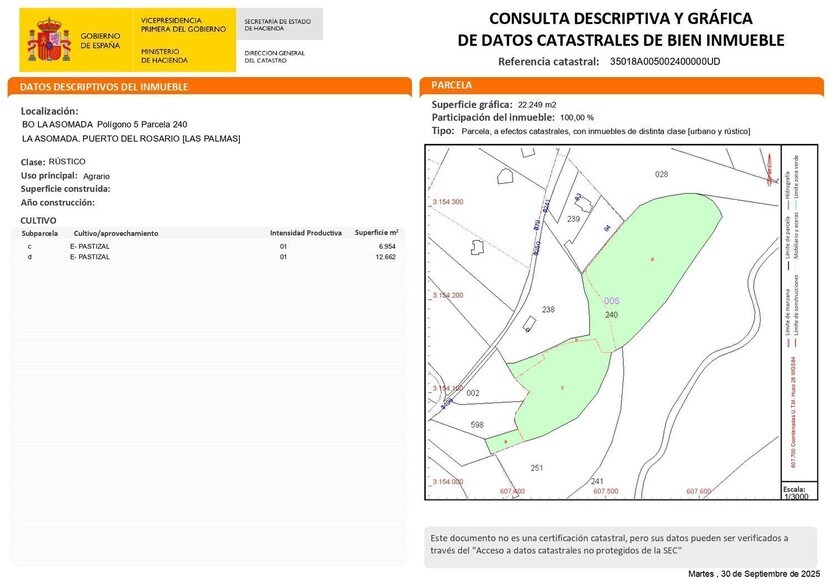 Magnífica oportunidad de inversión: 22.000 m² en La Asomada Ponemos a su disposición una espectacular parcela rústica de 22.249 m² situada en la estratégica zona de La Asomada. El terreno destaca por ser completamente llano, lo que facilita cualquier tipo de proyecto permitido en suelo rústico. Su ubicación es inmejorable: a escasos minutos de Puerto del Rosario y con la ventaja competitiva de encontrarse justo al lado del Parque Tecnológico de Fuerteventura. Una combinación perfecta entre la tranquilidad del entorno rural y la proximidad a los principales núcleos de servicios y desarrollo de la isla. Dicha ubicación posicionan esta finca como una de las piezas más interesantes de la zona por su potencial y dimensiones. La información contenida en este anuncio está sujeta a posibles modificaciones. El precio no incluye impuestos ni gastos de compraventa (notaría, registro, gestoría, etc. ).