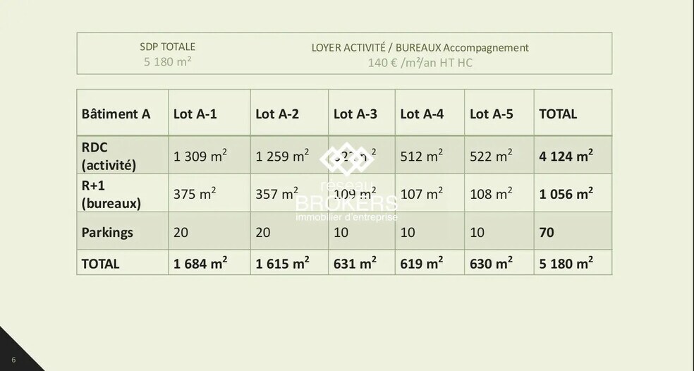 Le programme se compose d'un bâtiment divisible en 5 lots (à partir de 619 m2),